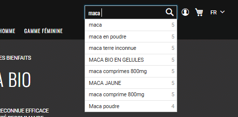 Qu’est-ce qui se cache derrière le terme d’ « auto-complete » tout d’abord ? C’est une fonctionnalité permettant à l’utilisateur d’accéder à un contenu précis de votre site sans en effectuer la saisie complète. Bien sûr, comme vous le voyez sur la capture d’écran, Magento ne propose pas une recherche riche incluant des photos par exemple, mais rien ne vous empêche pour autant d’agir sur les termes proposés. Après tout, autant aider, guider votre client vers le contenu le plus « pertinent ».