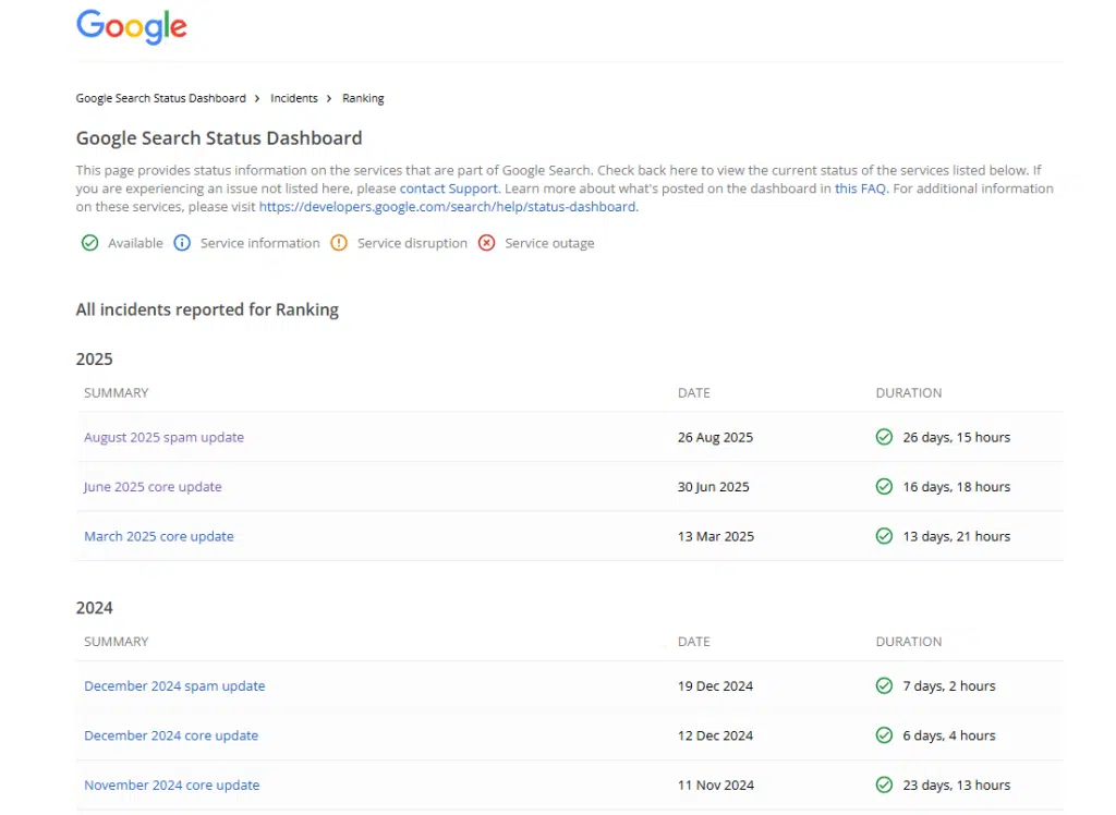 En 2024, 7 mises à jour majeures ont été déployées, dont certaines ont été parfois dévastatrices pour des éditeurs de site. Des mises à jour de deux types : les Core Update modifient le système de classement, les Spam Update luttent contre les pratiques abusives.