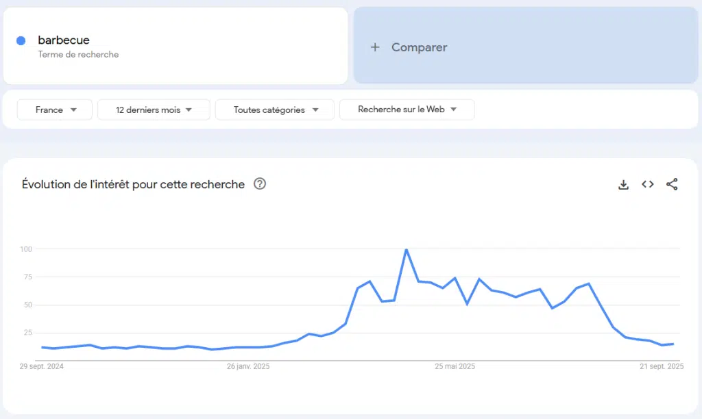 En cas de doute sur la saisonnalité d’une recherche, vous pouvez consulter l’outil Google Trends pour confirmer ou infirmer ce fléchissement dans la demande.