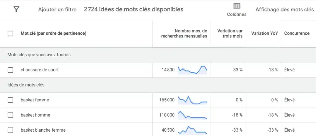 Pour un e-commerce, Keyword Planner permet notamment de repérer :