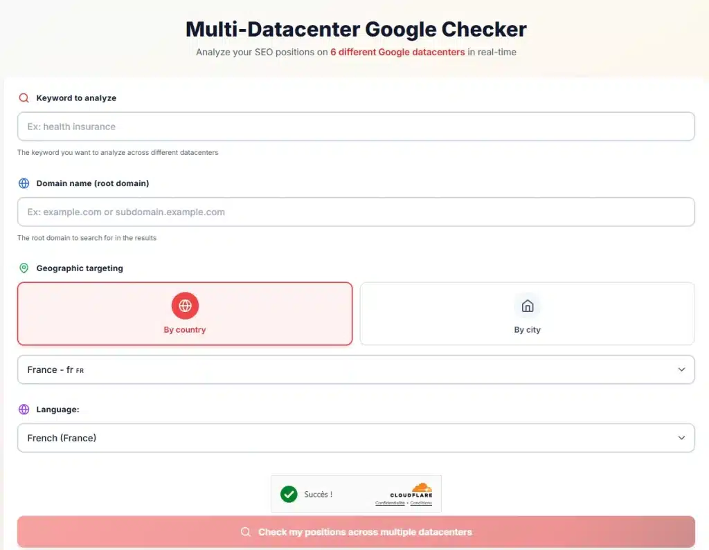 SEO Hero Ninja est un outil simple qui permet de vérifier le positionnement réel d’un site sur un mot-clé donné, en testant plusieurs data centers Google.