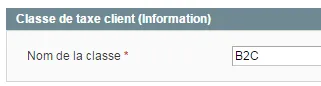 Cette capture vous montre que ce formulaire est également très simple. En France, il ne vous sera pas nécessaire de créer plusieurs variantes. Le cas du particulier étant le plus commun. Attention vous gérer ici la taxe classe qui sera attribuée au groupe client et non au client individuellement.