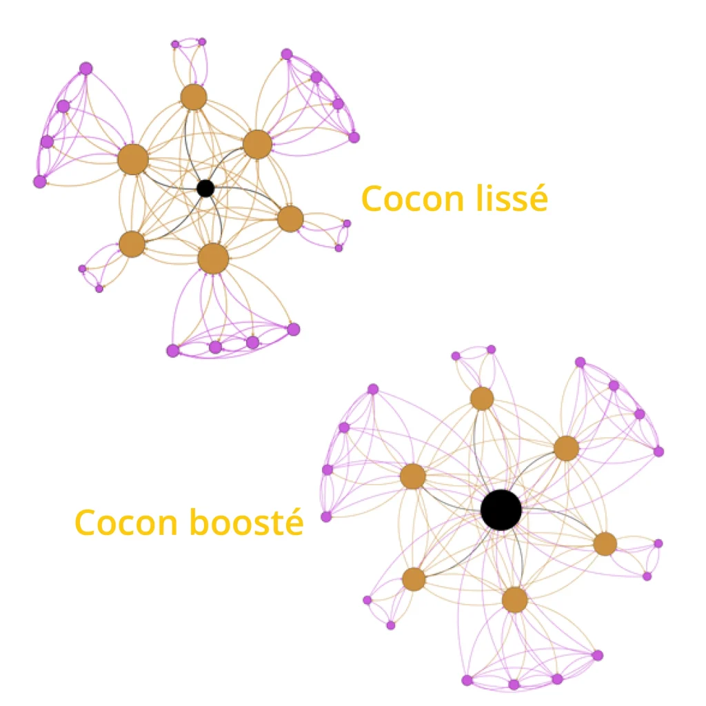 Un maillage interne bien structuré autour de thèmes clairs permet de construire des silos thématiques ou des cocons sémantiques (voir image ci-après) . Ces architectures de liens sont conçues pour concentrer l’autorité et la pertinence autour d’un mot-clé principal.