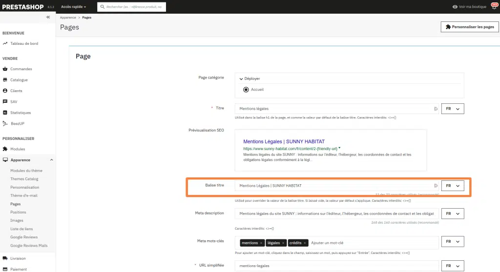 Comment modifier et optimiser votre meta Title sur Prestashop ?